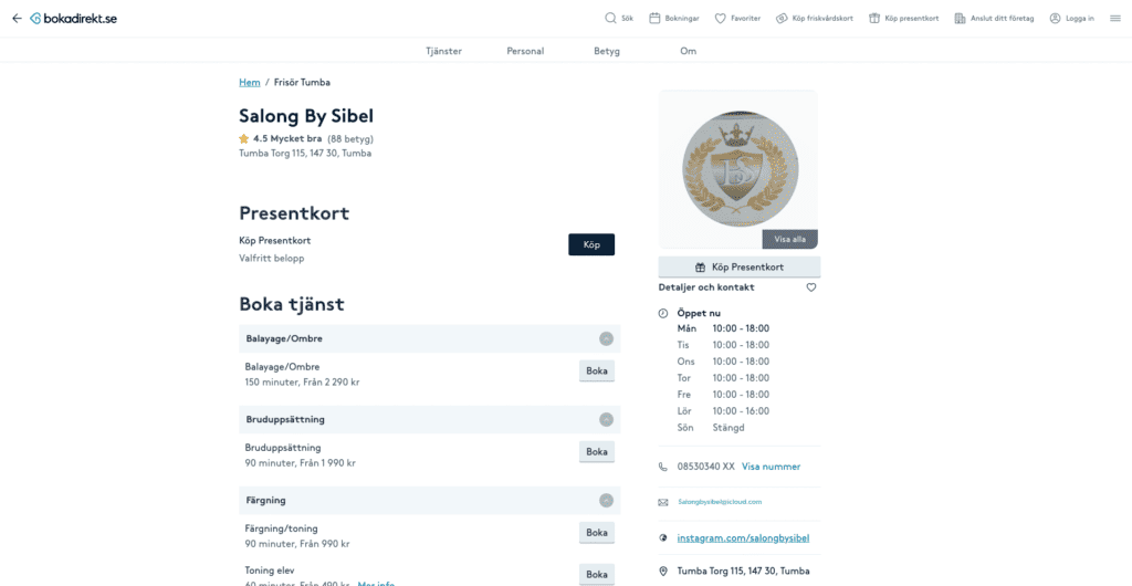 Det är vanligt för salonger att använda sig av Bokadirekt som bokningssystem. På Bokadirekt har du möjlighet att visa bilder från salongen och en lista med de behandlingar du erbjuder men en nackdel med Bokadirekt är att alla salonger ser ganska likadana ut.